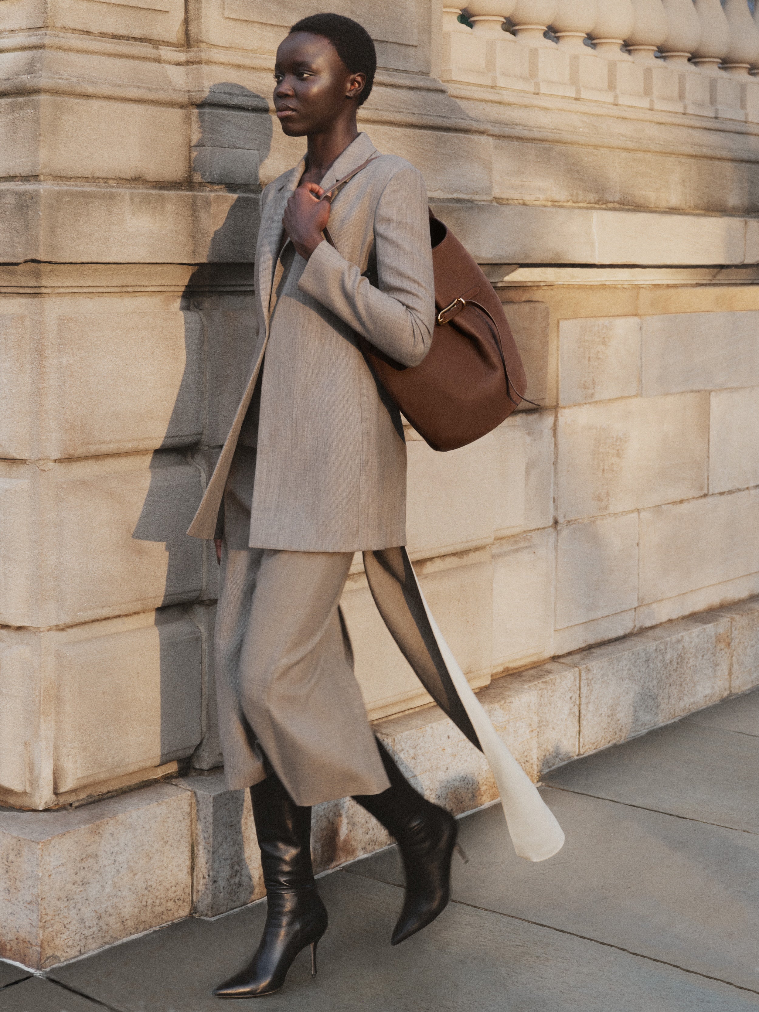 Belted Bucket Bag Large in Dark Brown