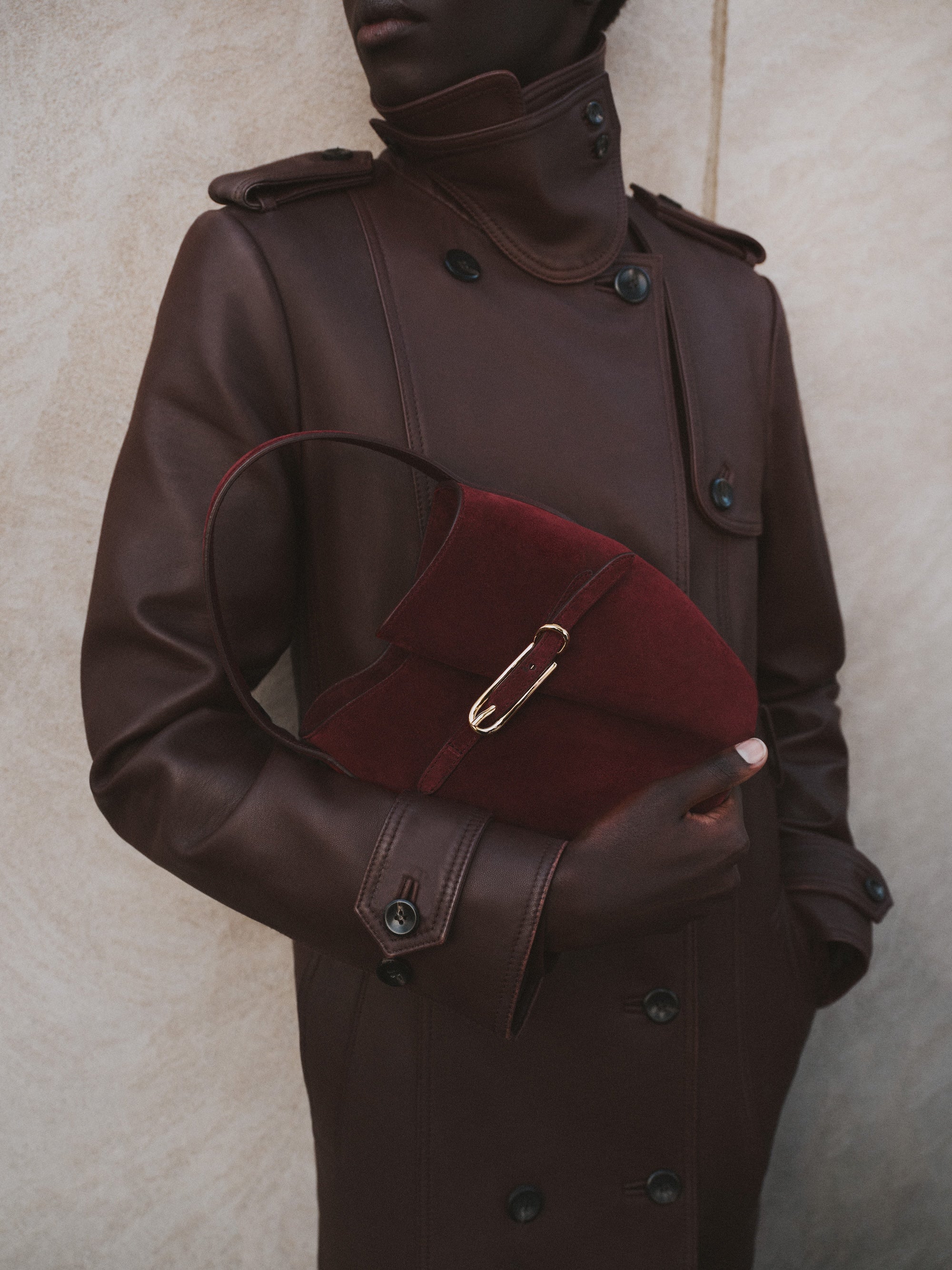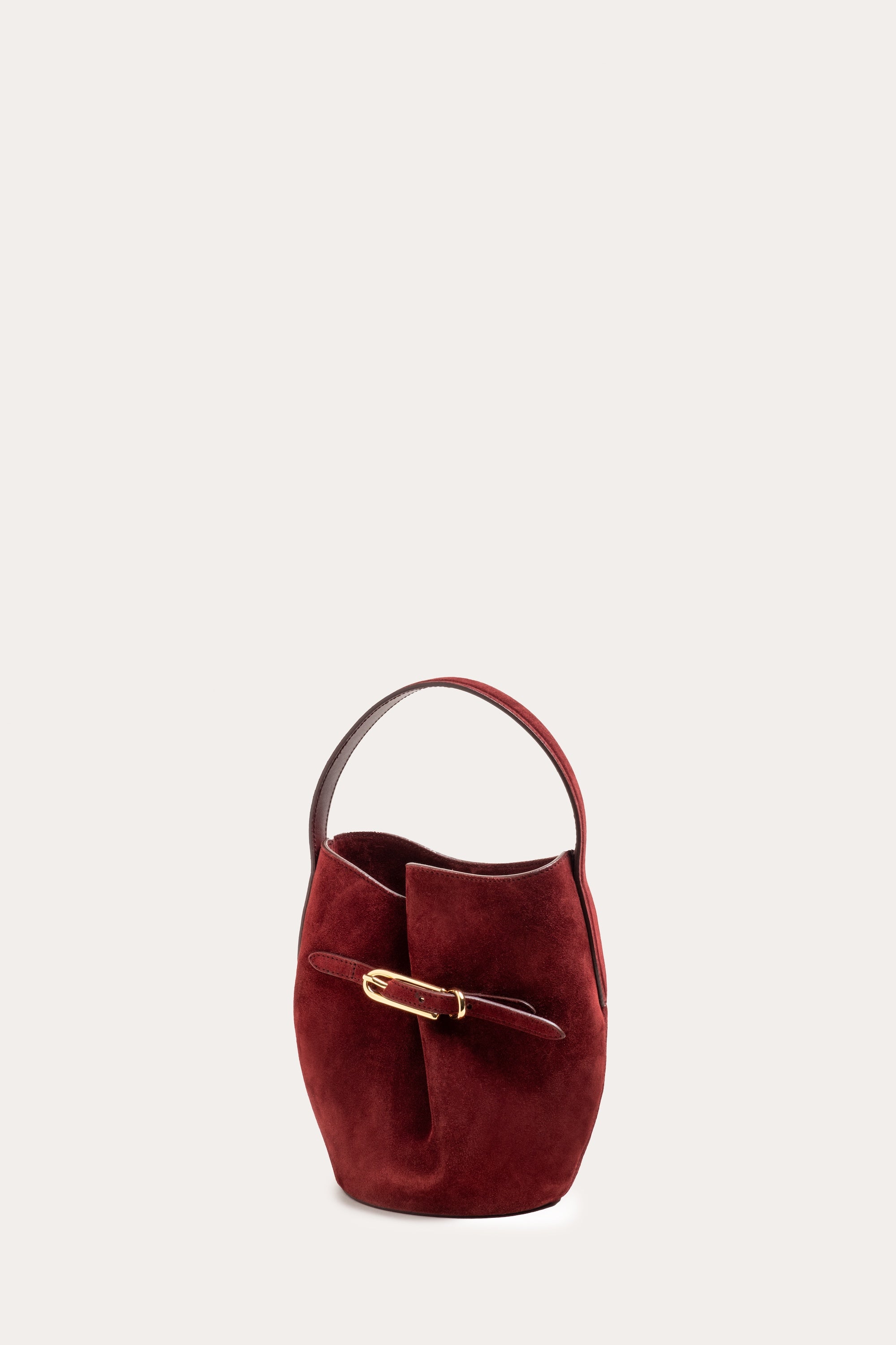 Belted Bucket Bag Mini in Maroon Suede