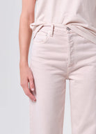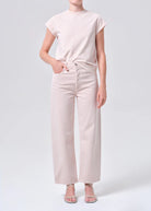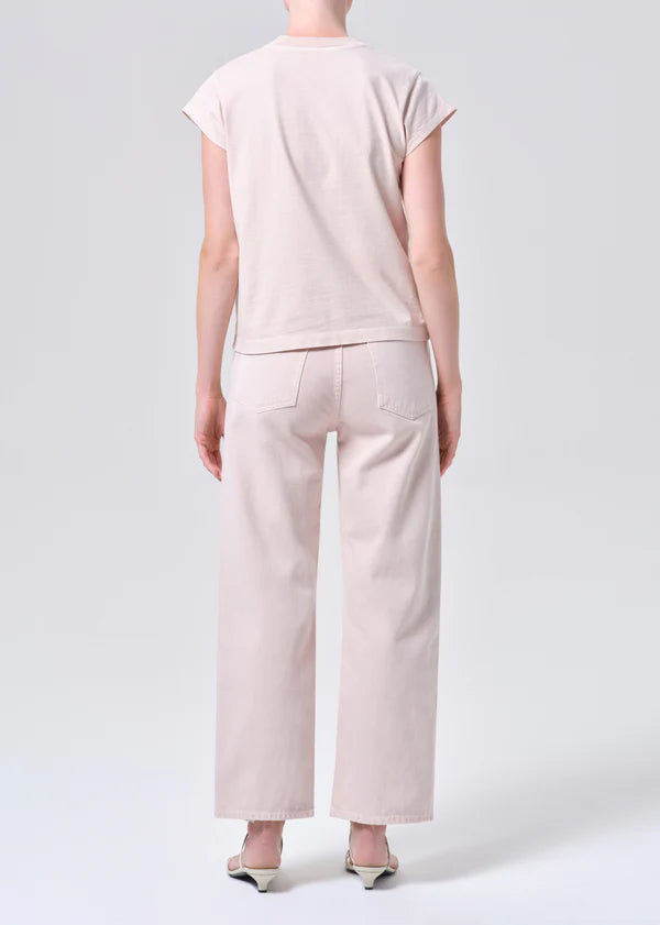 A high-rise wide-leg silhouette, the Ren Jean is designed with a flattering high waist, a relaxed fit through the hips, and a clean, elongated leg shape. Rendered in a light pastel pink wash, it brings a fresh, softly saturated twist to a timeless classic. Crafted from rigid non stretch regenerative cotton denim with a soft hand feel, it offers all day wearability while maintaining its sculpted structure.