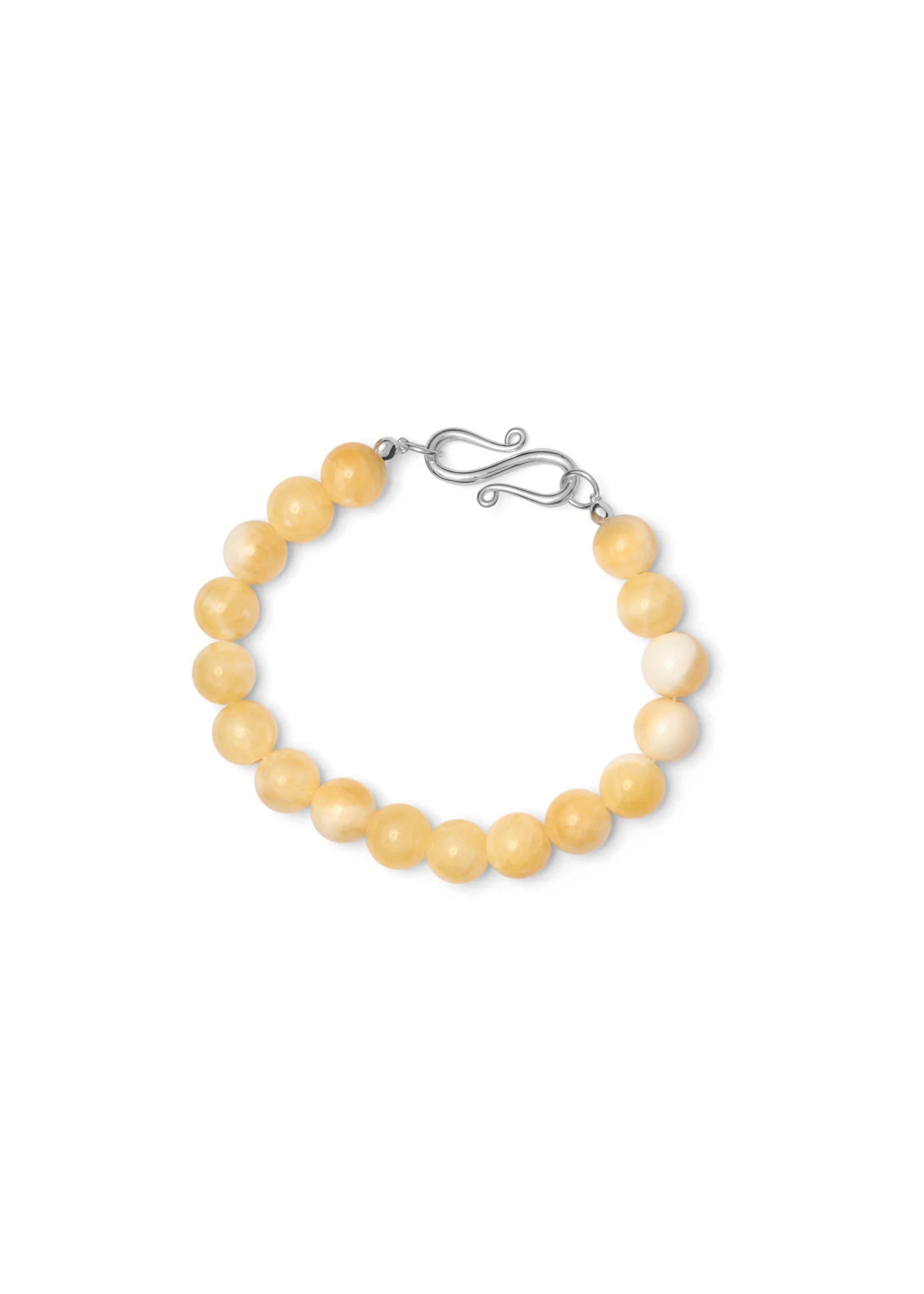 The Mary Bracelet is crafted from beige topaz jade stone strung on a tone-in-tone coloured string, secured with a sculptural silver lock.