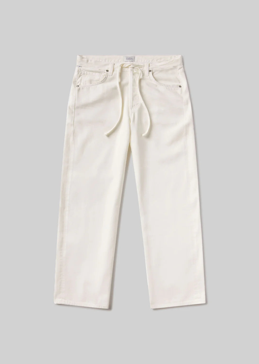 Looks Like: Off white cream denim trouser with drawstring detail