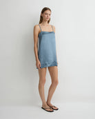 Kobe Mini Slip Dress in Steel Blue