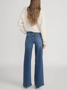 A FRAME introduction to the best-selling palazzo silhouette, this pair is designed with a flattering high rise, fitted hip, and subtle wide-leg flare that hits at the floor. Crafted from an ultra-stretch cotton blend for soft and comfortable wear.