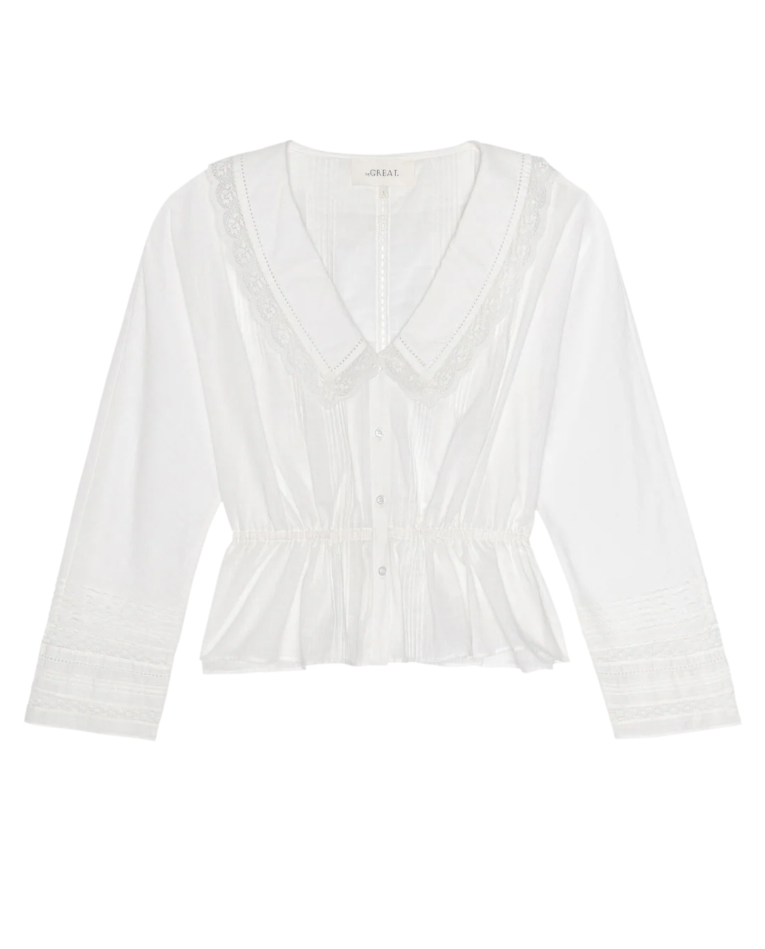 Inspired by vintage Victorian tops we’ve collected over the years, The Harper Top. captures the romance of the era with delicate lace and pintuck detailing set against a floaty cotton fabric. A 1940s-inspired collar with an open V-shape adds subtle structure, while dolman sleeves taper gently to the wrist for a soft finish. The fit is loose and easy through the body, complete with an interior waist channel and delicate cotton tie that allows you to cinch the silhouette as desired. A slightly cropped length makes it perfect for pairing with high-waisted trousers or vintage denim.