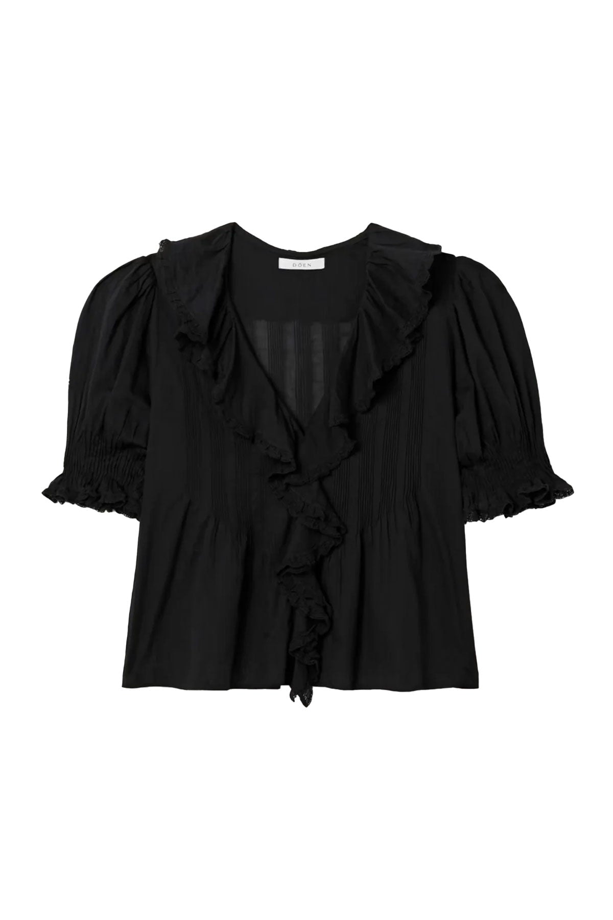 Crafted from the softest organic cotton voile, the Edwardian-inspired Henri Top - which made its debut in Spring 2018 - is a Favorite Character we find ourselves returning to again and again. It features a plunging V-neckline framed with cascading lace-trimmed ruffles that extend down the bodice and delicate clustered pintucks at the yoke, back, and short puffed sleeves. A line of hidden starburst buttons run up the center front. Wear it loose, or tuck it into your favorite high-waisted jeans.