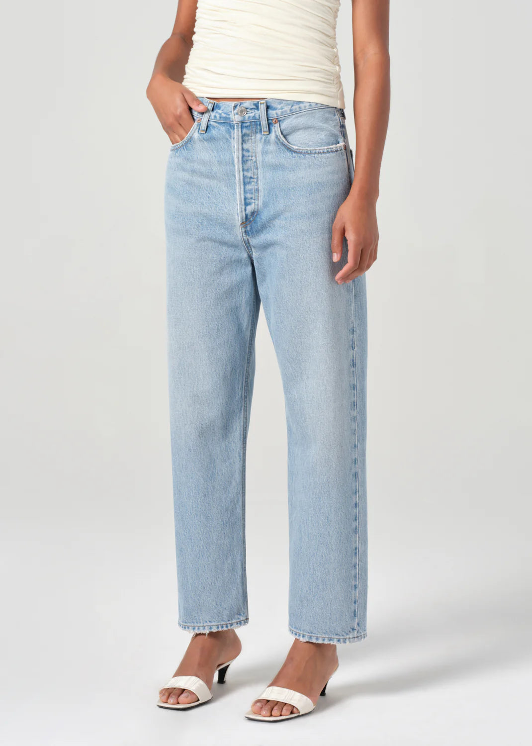 Our best-selling 90's Jean with the much-requested cropped inseam. This decade inspired mid-rise is designed to sit relaxed at the waist with an easy fit through the hips into a classic, loose straight leg. Style back to anything and everything.