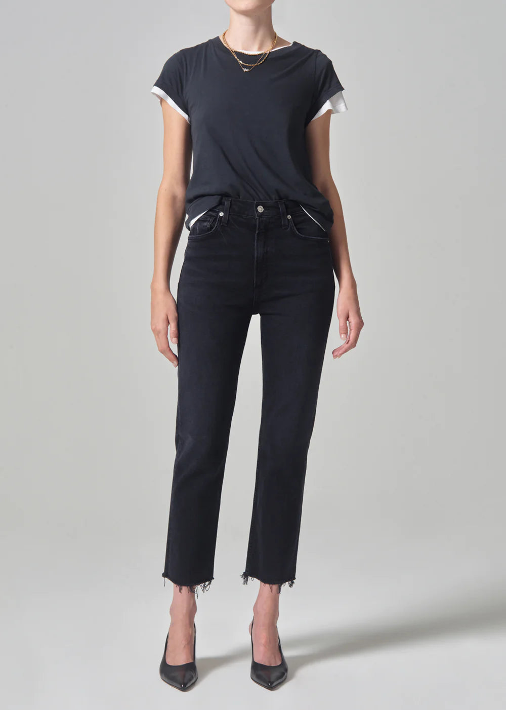 Daphne Crop High Rise Stovepipe in Peppercorn