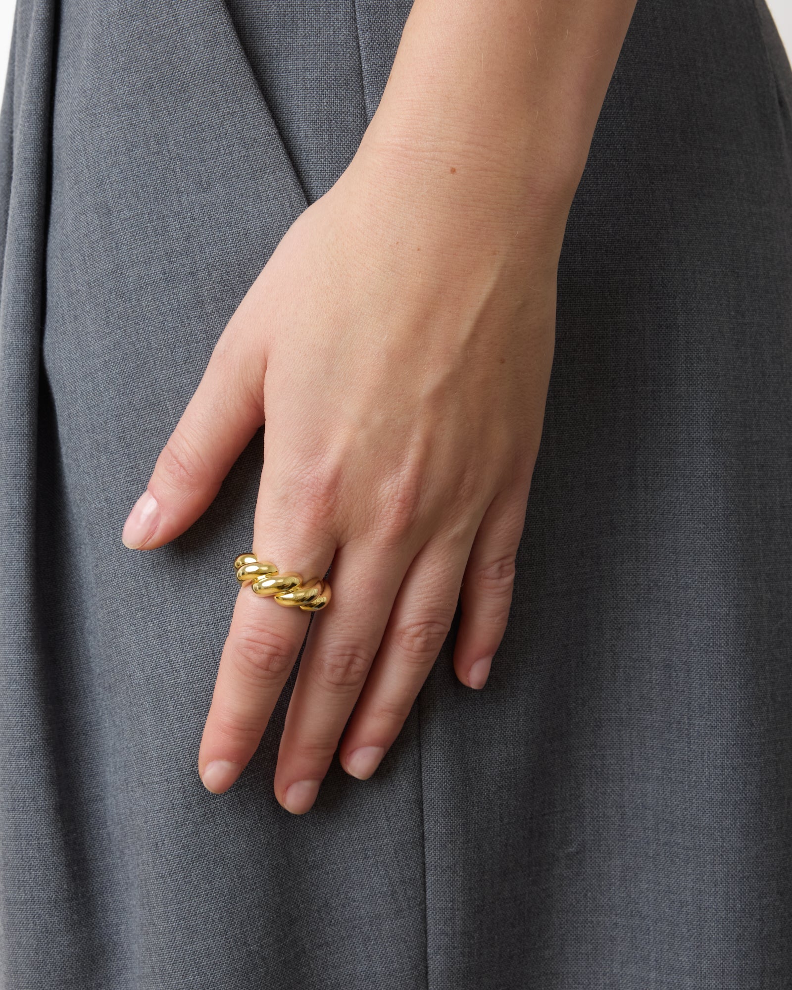 The Christine Ring features a subtle yet eye-catching design with its elegant and curved shape. Crafted from 18 carat gold-plated sterling silver, this ring can easily become your new go-to.