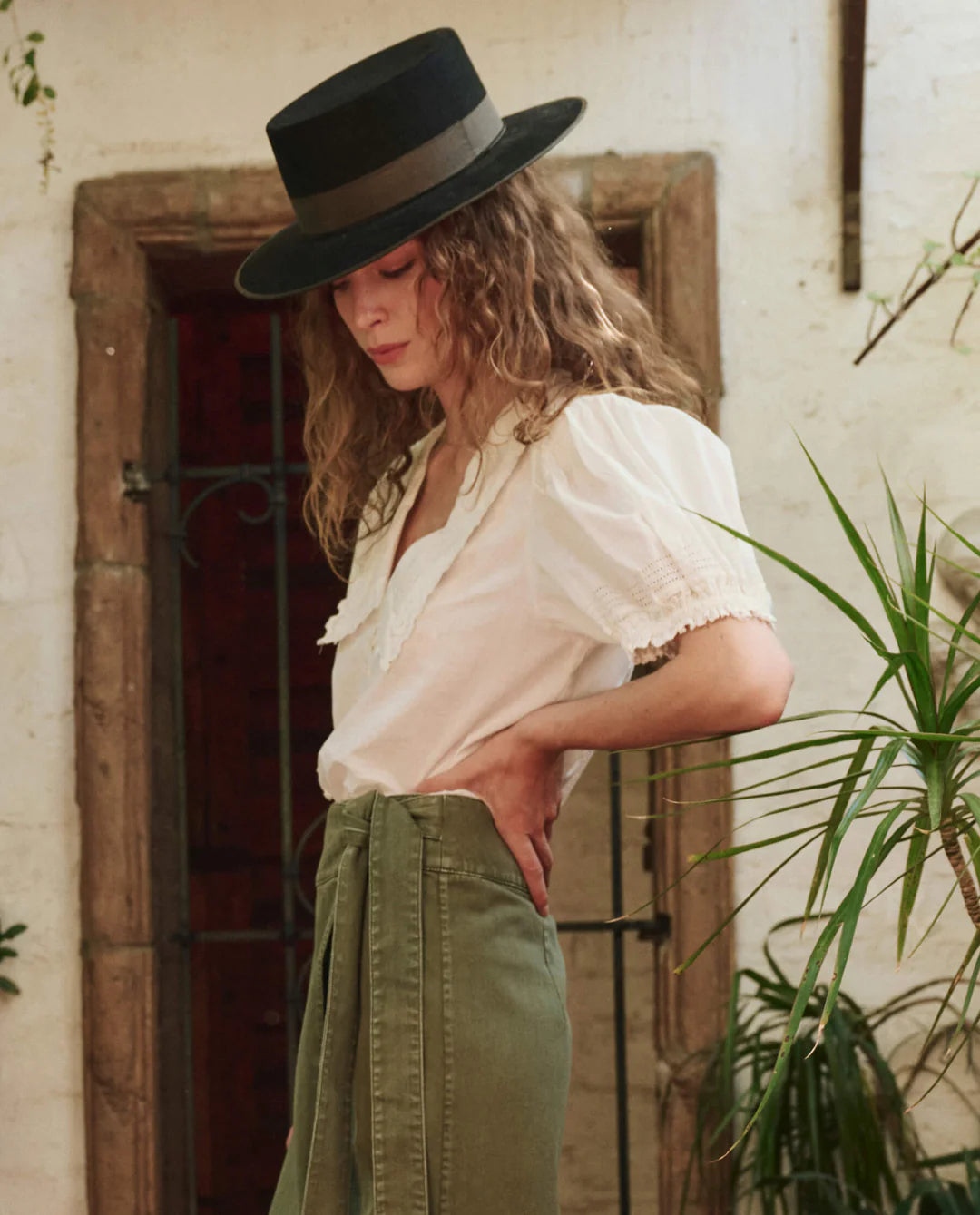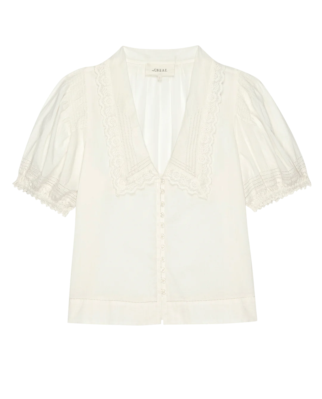 The Manor Top channels Victorian inspiration with a low V-neckline and vintage-inspired collar, trimmed with delicate cotton mesh lace for an airy, feminine touch.