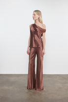 Satin Bias Off-Shoulder in Nutmeg