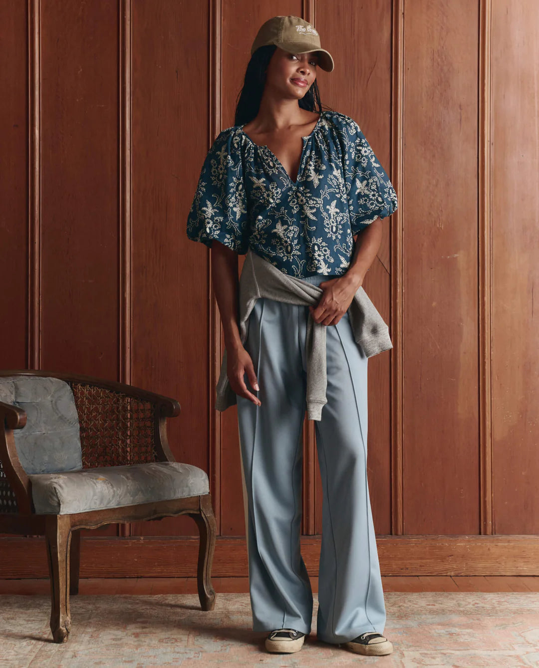Based on a 1970s track pant, The Wide Leg Track Pant. is designed to sit high on the hips, featuring an athletic-inspired, elasticated waistband for ease and comfort. It falls into a wide, straight leg with a long inseam, for added slouch. A charming pintuck runs down the front of each leg, while side seam pockets and a contrast side panel lend a subtle, nostalgic touch to this effortless style.